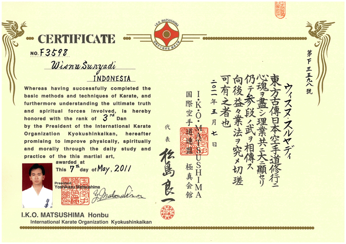 Andreas Laratsemi, 3rd DAN Certificate from IKO Matsushima…